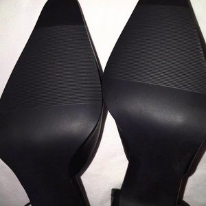 Womens pair of Coup D'Etat Ltd. strappy pumps. the uppers are black in color and are made of all man made materials.