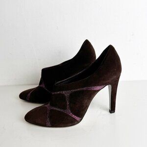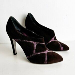 RENE CAOVILLA Ankle Boots in burgundy aubergine Suede and Rhinestones Size 37.5