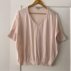 Chic REPEAT short sleeve knit in a soft blush pink with a flattering V‑neck and relaxed, drapey silhouette.