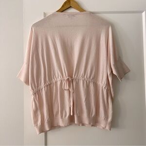 REPEAT Cashmere Short Sleeve V‑Neck Knit Top 38/S, Adjustable Drawstring Back