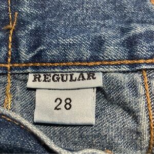 REPLAY Sz 28 Reg Side Strip Button Fly Mid Wash High Rise Jeans. Waist: 14” Rise: 11.5” Inseam: 34”