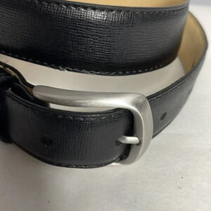 Ladies black Jose Collection reptile embossed print leather and man made silver buckle belt