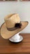 Vintage Resistol Self Conforming straw cowboy hat is the Silver Bullet Style with a band and feather. The straw is natural colour, and has "vinylcote wipe n wear" as per the tag inside the hat, which states you clean the hat with a damp cloth, it is stain repellent, water repellent, shape retaining and retards fading. The interior band of the hat has "Border Western Outfitters, Bellingham, Wash." which is the store the hat was originally purchased from.