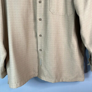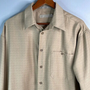 Mens tan Vintage 90s Retreat Micro Window Pane Plaid Shirt.