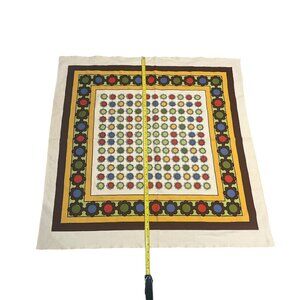 RETRO Small 32.5" Square Tablecloth Stylized Flowers Geometric Circles