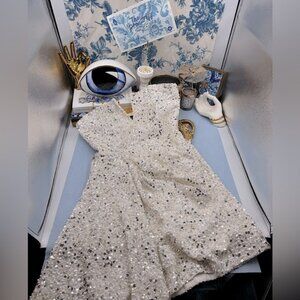 🆕 RETROFETE 🧿 NWOT Omer Sequin Dress, White & Silver, Sz XS (UK 8 US 4 )