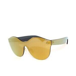 RETROSUPERFUTURE Tuttolente Mona gold Sunglasses. Part of RETROSUPERFUTURE's Tuttolente series noted for its unique transparent frames, the Lucia is modern statement eyewear at its finest. Made to look like one continuous piece that fuses the frame, lenses, and arms. Cat eye shape, reflective acetate. Lenses by Zeiss.
