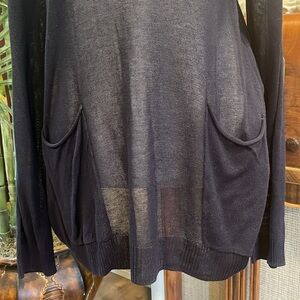 RETRO-ology M very light sheer navy long sleeve asymmetrical top with pockets
