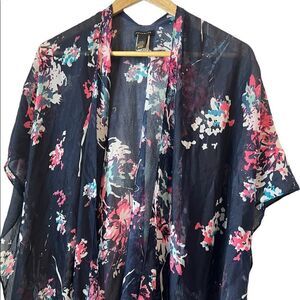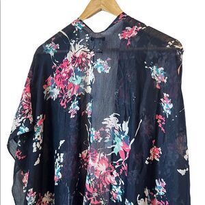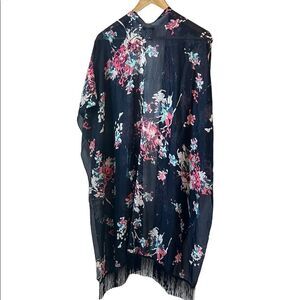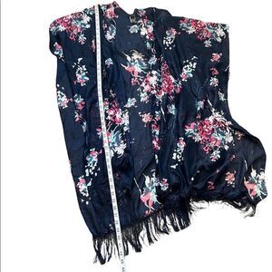 REVAMPED Blue Floral Lightweight Open Fringe Bottom Shall O/S