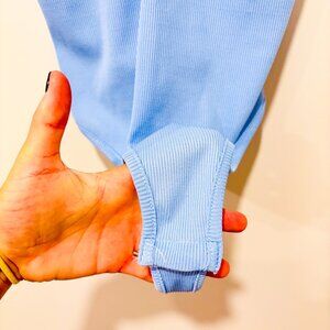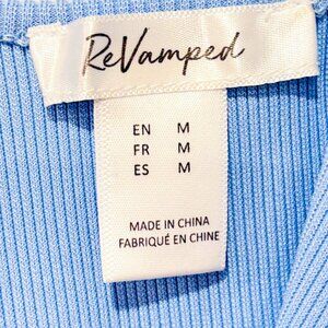 REVAMPED Blue Ribbed Bodysuit Minimalist Stretch Streetwear Top | Medium *