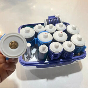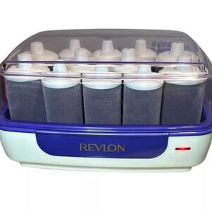 In good used condition, this curling set comes complete with clips to securely hold the rollers in place during use. Ideal for all hair types, the RV-258 is a practical addition to your styling routine. Be sure to review all photos for a detailed description of its condition and sizing.
