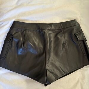 Revolve Superdown black faux leather mini skort in a size small. Fits a 25-26 best. Purchased on poshmark but did not fit me. This skort is very flattering!