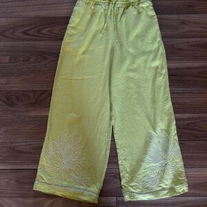 ▫️ Details: White floral embroidery along hem, elastic waistband with adjustable tie (note: stock version has tassels, these do not)