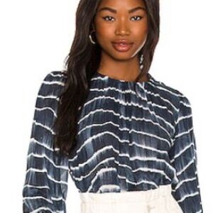 REVOLVE shirred top in Navy wave print,semi crinkle,semi sheer,