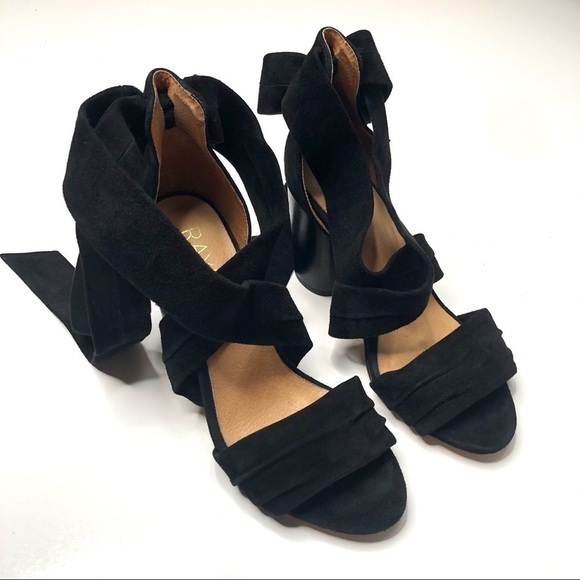 REVOLVE x RAYE Mia Ankle Wrap Black Suede Sandals Heels BLOGGERS FAVOURITE