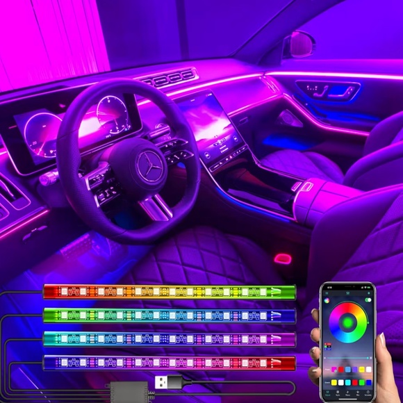 RGB Car Interior LED Strip Lights (4-Piece) | App Control, Music Sync, USB Plug