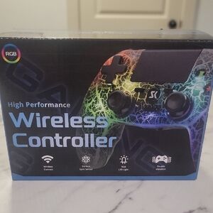 High performance wireless controller with RGB lighting. Features include a gyroscope sensor, LED light, and double vibration.