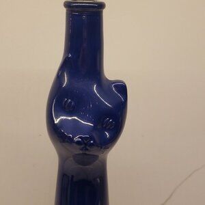 #860 Rheinhessen Cat Decanter Glass Navy Metalic Blue 13"h x 3"w vase