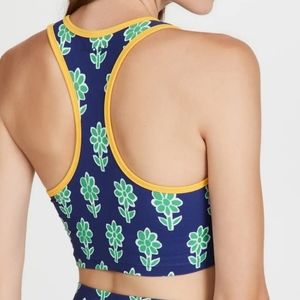 A racerback Rhode bra top for your athleisure wardrobe, featuring a long-line silhouette, an eye-catching print, and a touch of contrast trim at the edges.