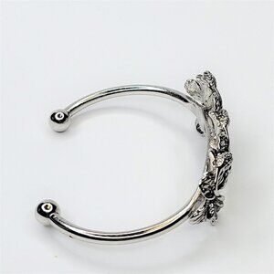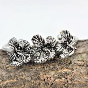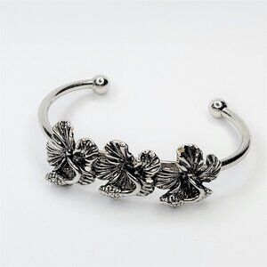 RHODIUM Cuff Bracelet Hibiscus Flowers Antique Rhodium Plating
