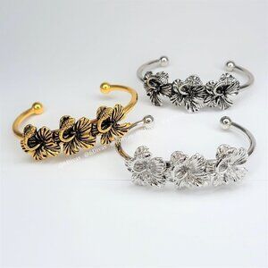 Custom- made Cuff Bangle Bracelet with three hibiscus flowers