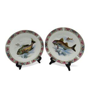 RICHARD GINORI Set of 2 Fish Ceramic 10" Floral Border Plates Vintage
