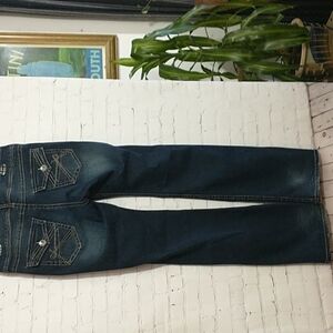 RICKI'S Brooke Revolution boot cut jeans back flap chunky stitch pockets sz 29/8