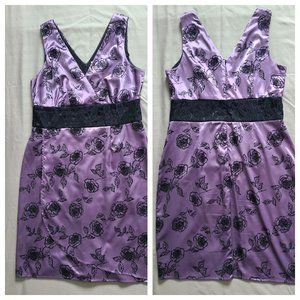 RICKI'S Empire Waist Lilac Crossover Cocktail Dress w/Velvet Floral Print