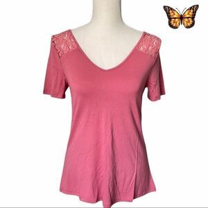 RICKI'S Lace Trim Double-V Tee Size Extra Small