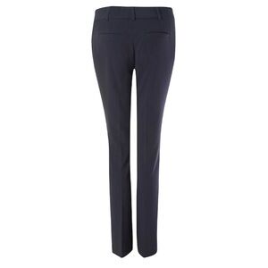 the miracle pant in navy, with L pockets, wide waistband, and a slightily narrower leg opening than the classic bootcut