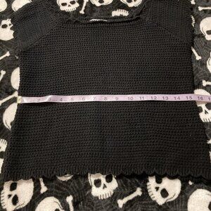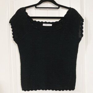 RICKI'S Vintage black cap sleeve knit top w/ scallop edges SMALL MEDIUM sweater