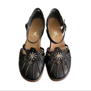 RIEKER Black Leather Mary Jane Style Sandals Shoes Ankle Strap Heel 38