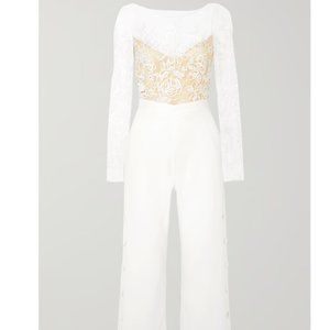 RIME ARODAKY Braham cropped embroidered tulle and crepe bridal jumpsuit