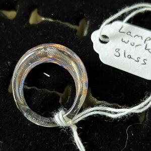 RING, HANDBLOWN GLASS WITH ROYAL BLUE OVALS AND SHINY GOLD COLOUR CROSSHATCH,