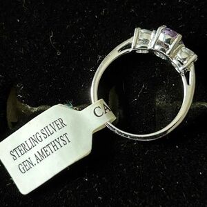 RING, OVAL AMETHYST WITH 2 ROUND SIDESTONES, STERLING SILVER, LADIES SZ 6, NEW, TAGS ON