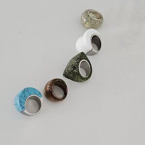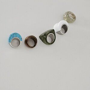 **White, Turquoise, & Green sparkle rings are big & chunky