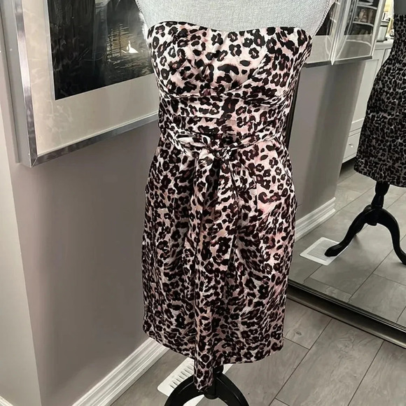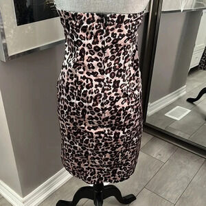 RIPE Strapless Animal Print Satin Mini Dress Pockets, Size M