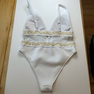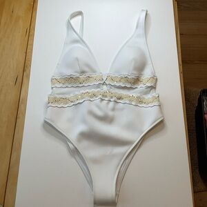 RIVER ISLAND White/Gold Embellished Cutout Swimsuit Size 8