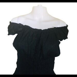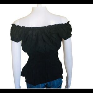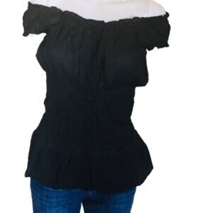 RIVER ISLAND Y2K Off Shoulder Bardot Blouse With Cap Sleeves Black Size Small