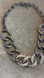 R.J. Graziano Gunmetal Silver tone Chrome chain link chunky necklace rhinestone