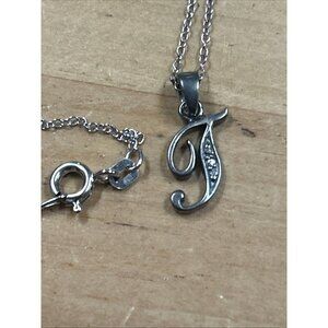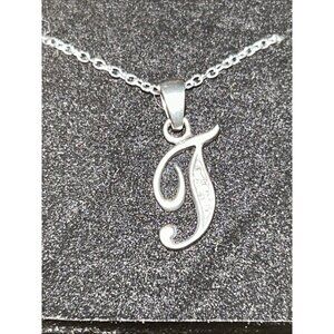 RJ Graziano Sterling Silver Diamond Initial T Pendant 18" Rope Necklace Signed