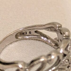 RJ Graziano Size 6 925 Sterling Silver Cutout Leaf Evil Eye Pattern Ring