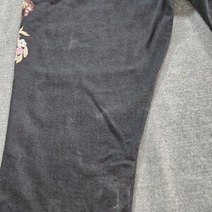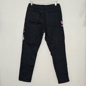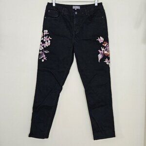 RJR John Rocha Jeans Womens 18 R Black High Rise Embroidery Flowers Sequins Boho