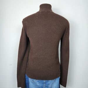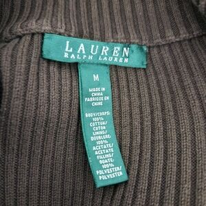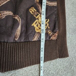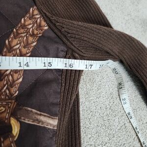RLL Vintage Ribbed Brown Cardigan Jacket Equestrian Size M Horse Bridle Print