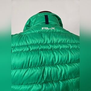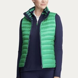 RLX RALPH LAUREN Reversible Green/Navy Down Puffer Vest With Travel Bag. Small