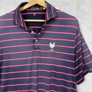 RLX Ralph Lauren Golf Polo Shirt Size M Navy Pink Stripe Wicking Stretch ‘Read’