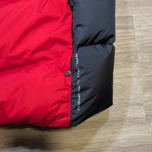 RLX Ralph Lauren Men's Large Down Puffer Vest Gilet Red Navy Full Zip