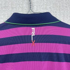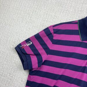 RLX Ralph Lauren Polo Shirt Mens Large Purple / Blue Striped Stretch Preppy Golf