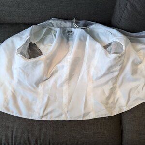 intage R&M Richards formal bolero jacket in excellent used condition. This elegant piece features a sophisticated design with opaque body construction and ethereal sheer details on the wide sleeves and pointed lapel. The sheer fabric has a subtle sparkle effect, perfect for special occasions. Fully lined for comfort and structure.