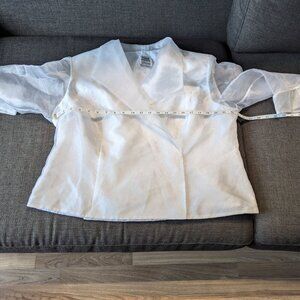 R&M Richards Vintage White Formal Bolero | Sheer Sparkle Details